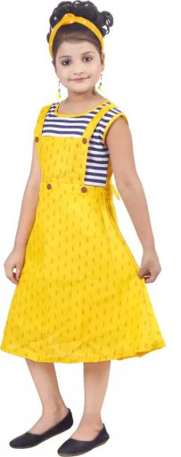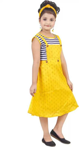 Girls Below Knee Festive/Wedding Dress  (Yellow, Sleeveless)